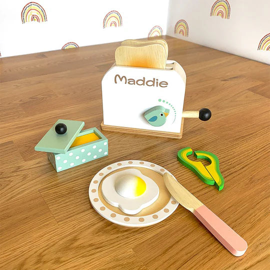 Treat yourself to a healthy breakfast with this fabulous wooden toaster set in cool contemporary colours by Tender Leaf Toys, which we engrave individually for you.