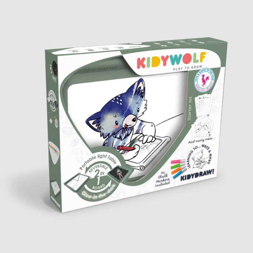 KIDYDRAW PRO is a portable luminous tablet. Your child can faithfully reproduce letters, numbers or any existing drawing. The two-sided back doubles as a blackboard, with a neon effect that brings out the colors of your child's drawing in the dark.