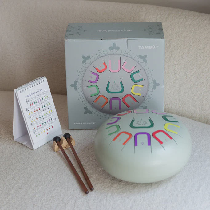 Tambú is an innovative tongue drum designed for all ages. It allows you to create harmonious melodies from the very first moment, with no prior musical knowledge required. Its colour and number coding system makes learning intuitive and fun.