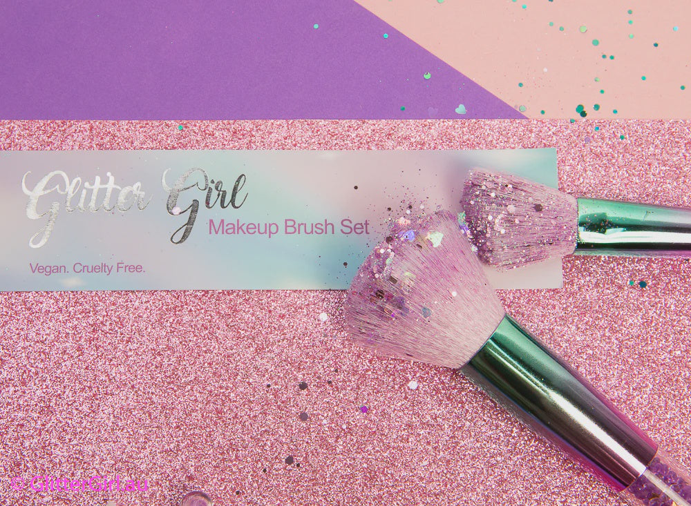 5 gorgeous soft hypo allergenic & cruelty free, vegan brushes with the most amazing sparkle filled handles.